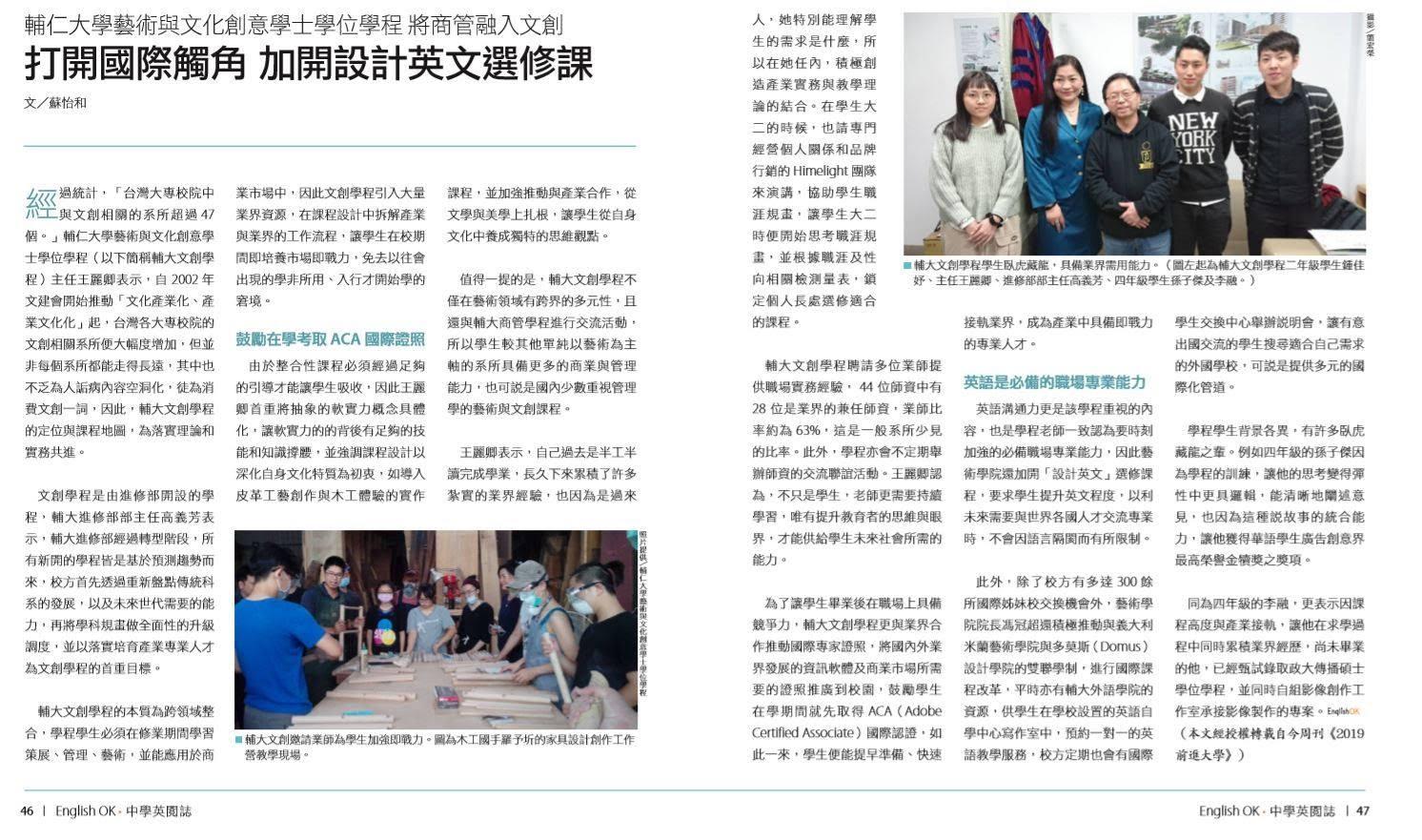 【報導分享】採訪標題:輔仁大學藝術與文化創意學士學位學程 將商管融入文創