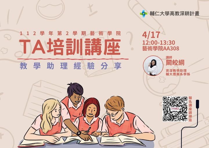 【活動公告】藝術學院TA培訓講座-教學助理經驗分享