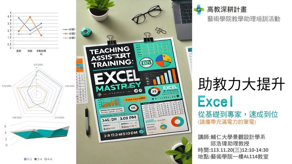 邀請您參加「助教力大提升Excel 從基礎到專家,速成到位」!這次活動特別邀請本院邱浩瑋老師協助演講與指導,幫助您快速掌握Excel技巧,成為助教界的Excel高手!