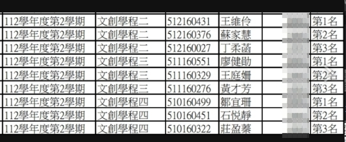 112學年度第2學期「輔仁書卷獎」進修部部獲獎名冊
