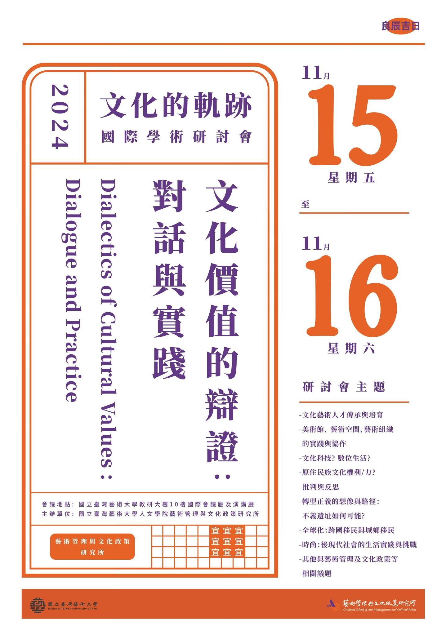 地點:國立臺灣藝術大學 教學研究大樓 10樓國際會議廳&演講廳