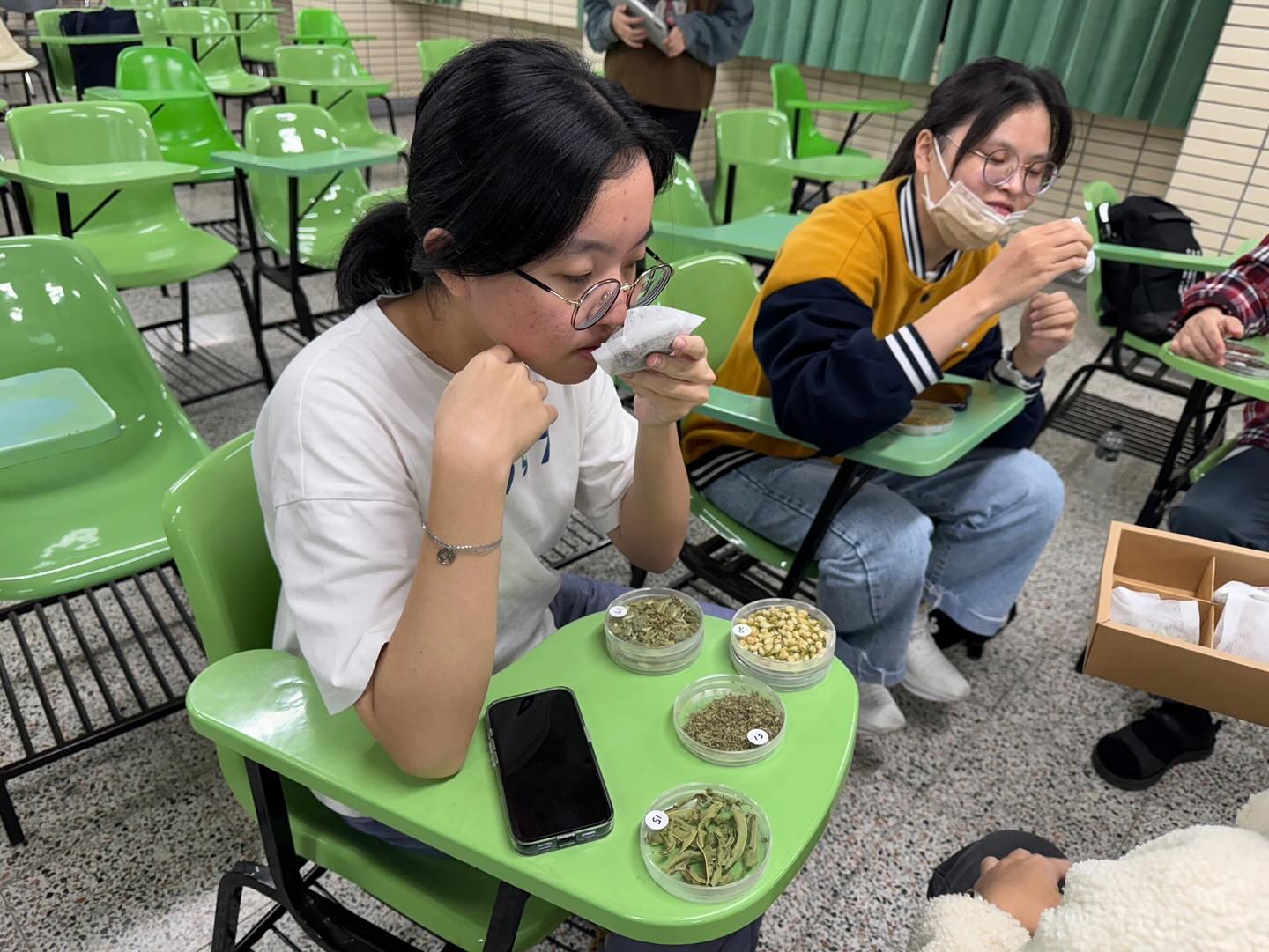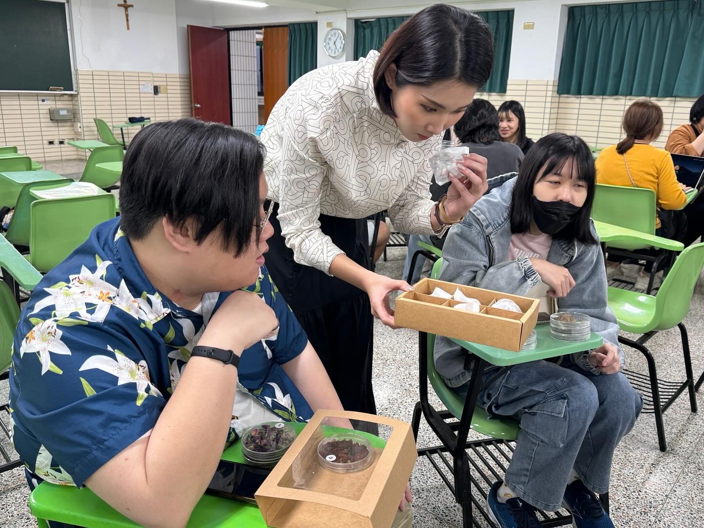 文創學程相當重視療育藝術的課程規劃,很榮幸邀請到顏值與身高跟國外模特兒都沒兩樣的嘉妤老師,以永續發展指標中健康福祉的精神,到輔大進修部教學,讓同學從遊戲中學習到植物的美好。療癒了同學的身心,更讓最近幫忙我們佈置藝術學院的江老師可以休息療癒一下,功德無量啦!