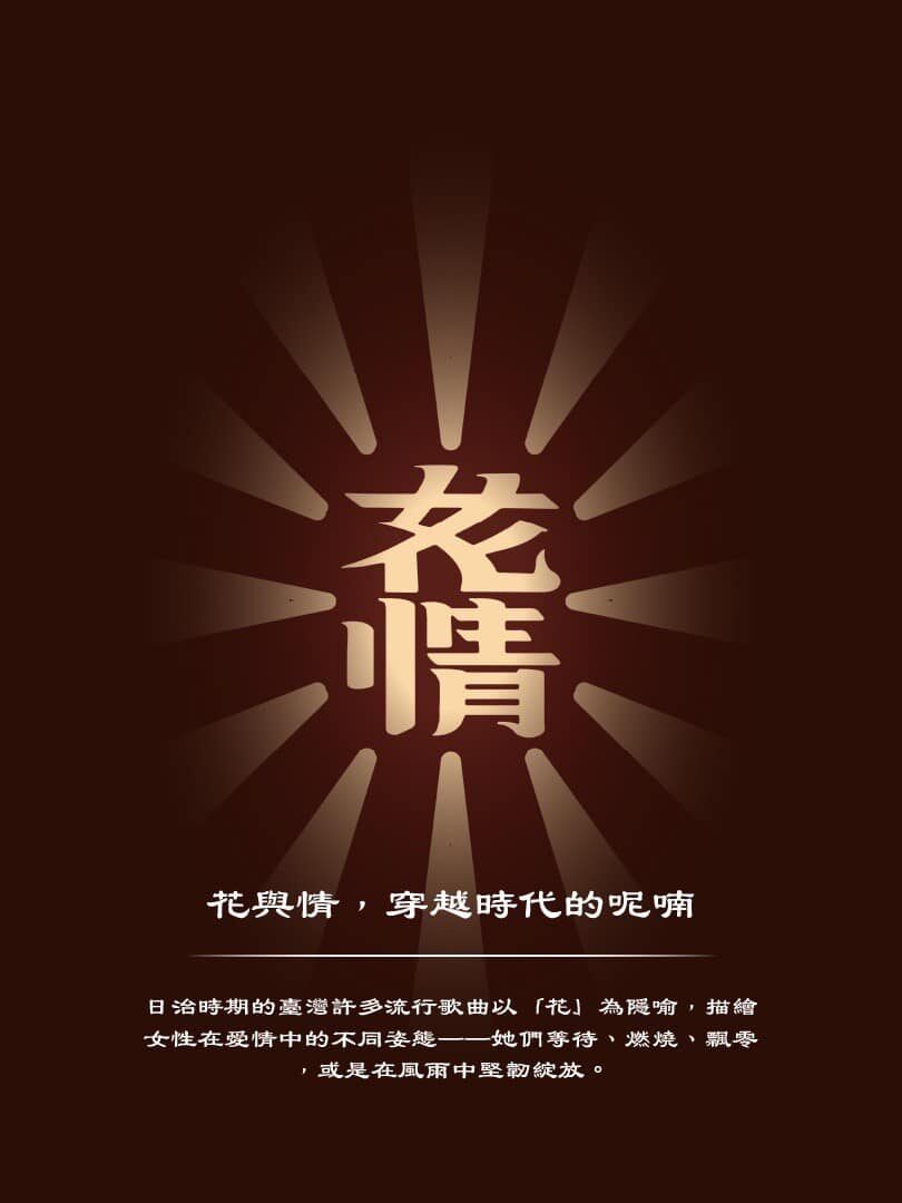 臺灣3~40年代時代情歌中的花與愛情,老音樂新呈現!在爵士與嘻哈的交錯之中,重溫台語經典歌謠的文化價值。現場樂團、主題調酒、復古變裝派對,一場穿越時空的音樂饗宴!