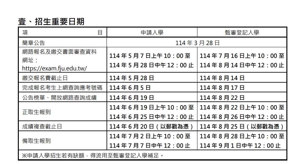 📢 114學年度招生簡章已公告於輔仁大學招生資訊平台,