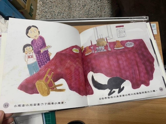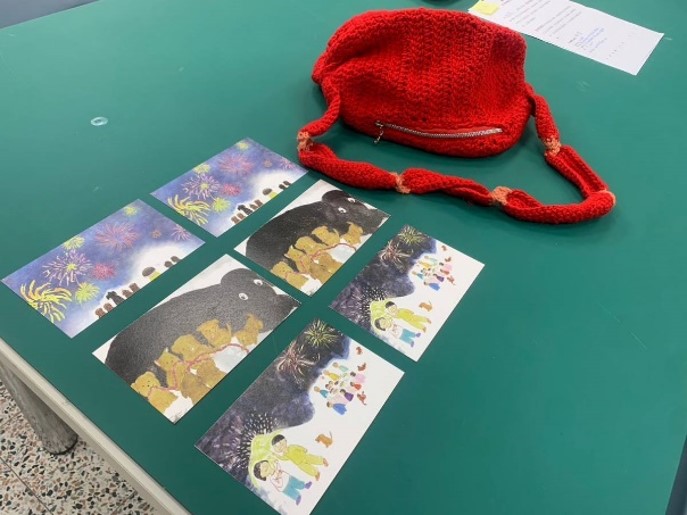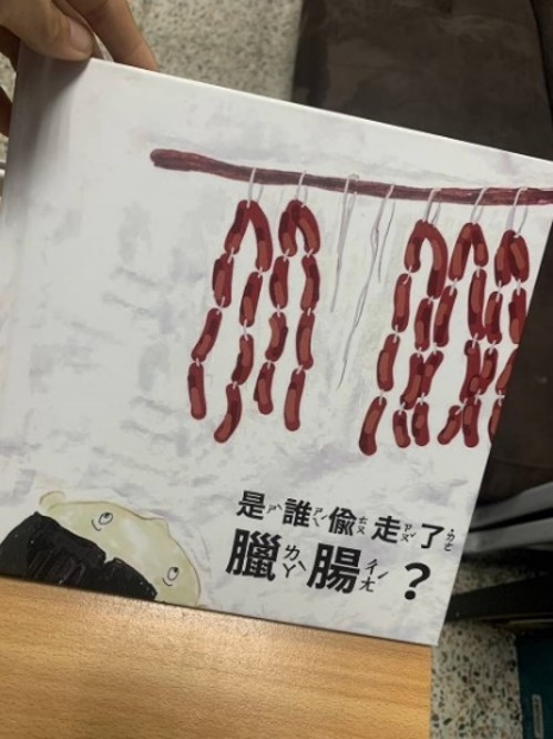 • 以眷村文化-過年為主題所製作的《是誰偷走了臘腸》繪本教材、臘腸針織包、明信片